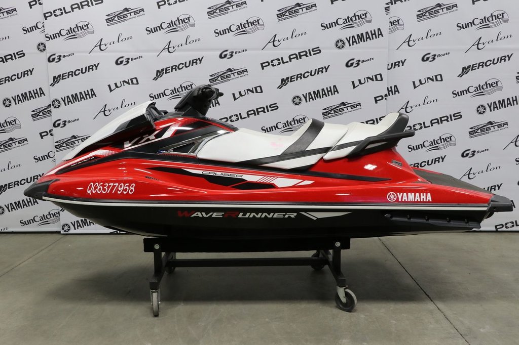 The 2018 Yamaha VX Cruiser was available in a Torch Red Metallic/Pearl White color scheme. It features a 1049cc TR-1 High Output engine and a lightweight NanoXcel hull.