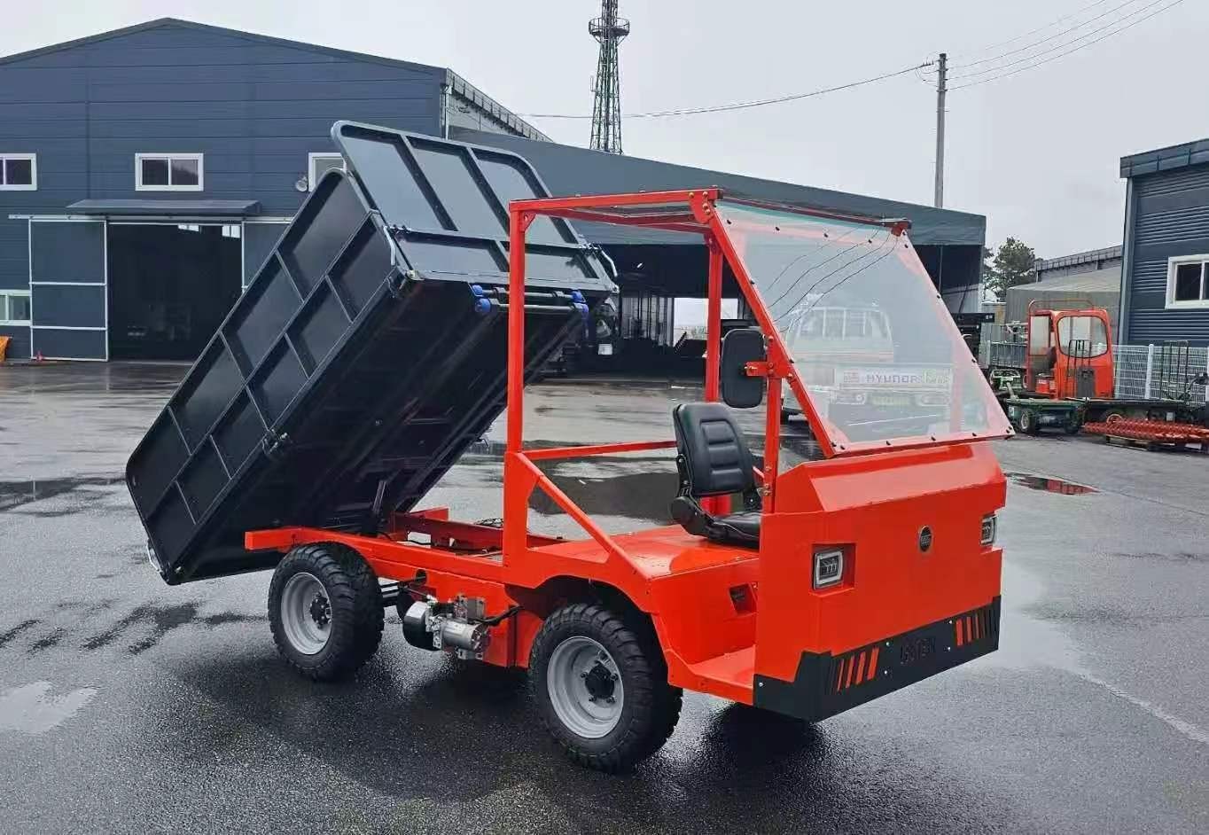 Typical SpecificationsSpecification Value Source Dimensions (L x W x H) 2780 × 1220 × 1040 mm (approx. 109 x 48 x 41 in) Weight (Dry) ~610 kg (1345 lbs) Load Capacity ~400 kg (882 lbs) Cargo Box Size (L x W x H) 1600 x 1160 x 230 mm (approx. 63 x 46 x 9 in) Max Lift Height 1500 mm (approx. 59 in or 4.9 ft) Motor Type AC Motor (Anti-Slip) Battery 51.2V LiFePO4 Lithium Battery (150Ah) Max Speed 16-24 mph (approx. 24-38 km/h) Max Range Up to 64 miles (approx. 103 km) on a single charge Climbing Ability Up to 30° angle Drive System 4-wheel drive (4WD) or 2WD options are generally available depending on the specific model